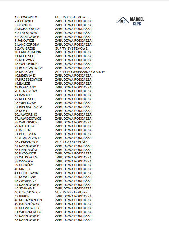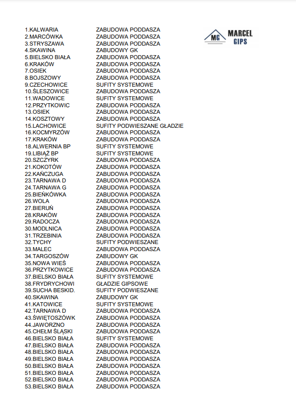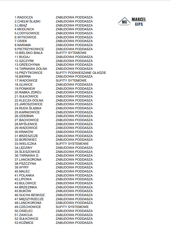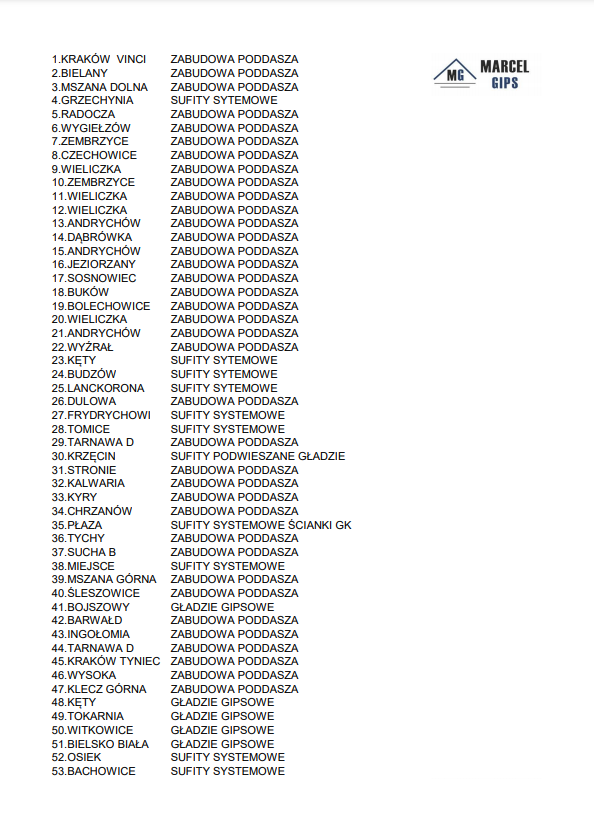 Marcel Gips to firma która założona została w 2005 roku i oferuje usługi suchej zabudowy wnętrz