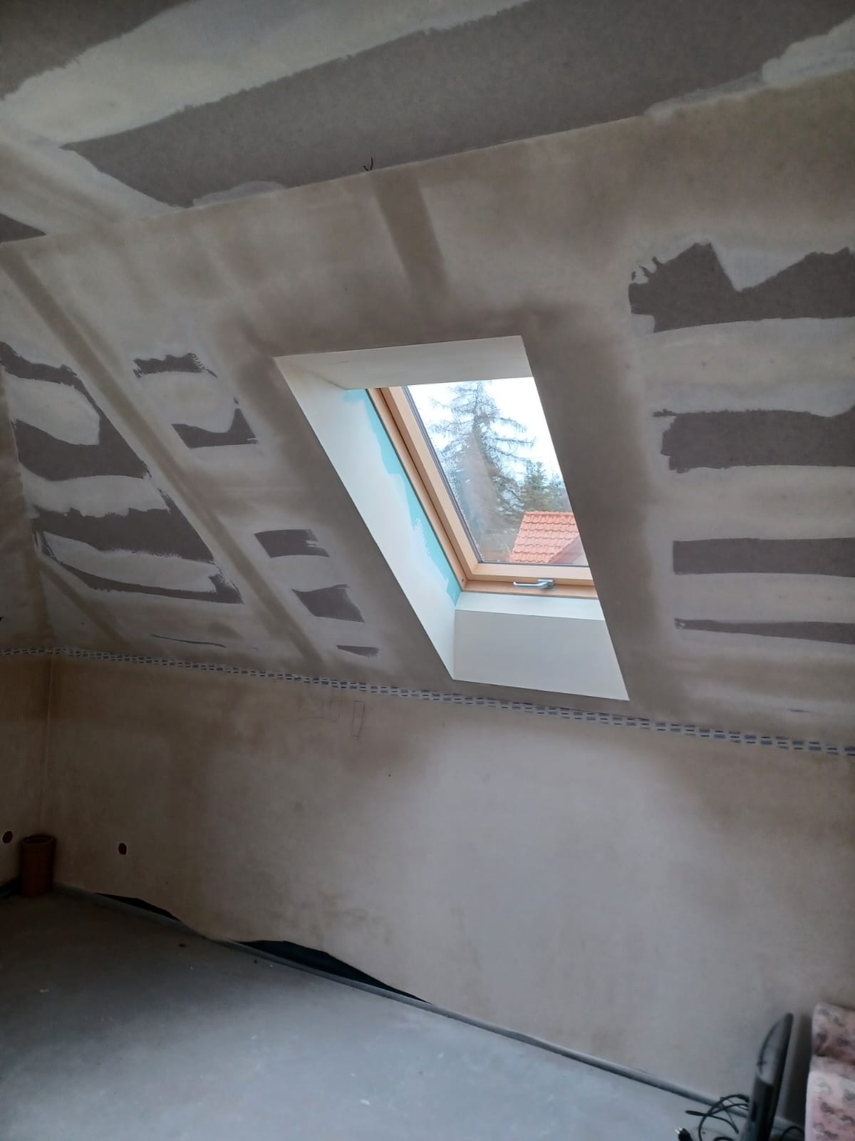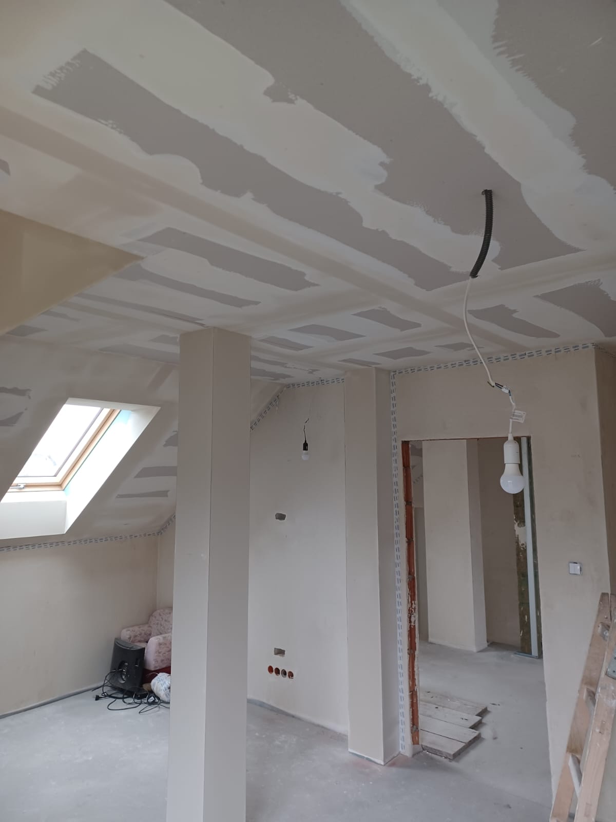 Montaż płyt rigips na zabudowie poddasza w konstrukcji CD i UD wraz szpachlowaniem połączeń płyt GK